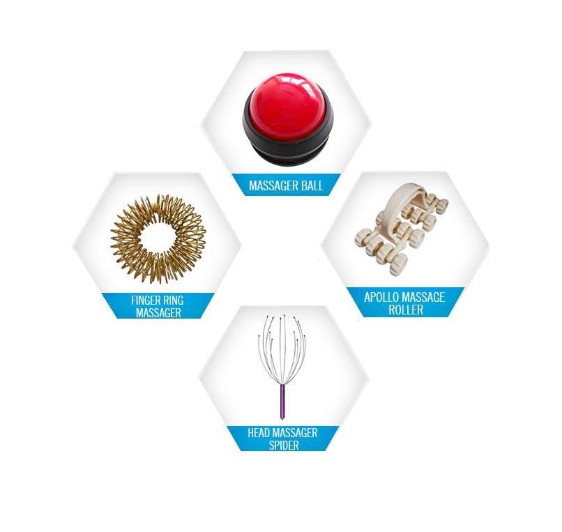 منتجات الرعاية الصحية المختلفة ، مثل مدلك الرأس ، مدلك القدم ، بكرة التدليك ، بكرة التدليك الكروية ، عصا التدليك وغيرها من ملحقات الرعاية الصحية.
